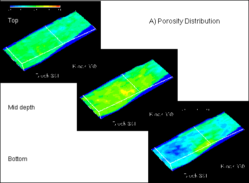 Figure 2. Porosity distribution predicted by a geostatistical co-kriging between logs and the impedance inversion of the 1992 seismic survey for the LF reservoir of the EI 330 field.