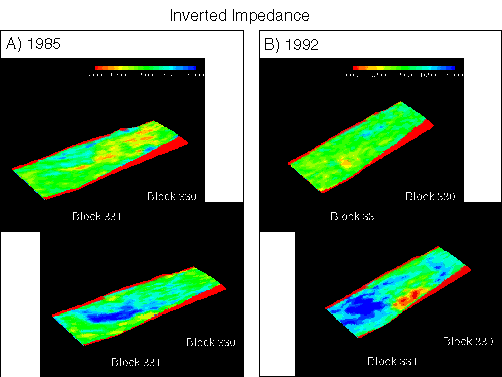 Figure 3. Inversion results for 3D seismic surveys from 1985 (left) and 1992 (right).