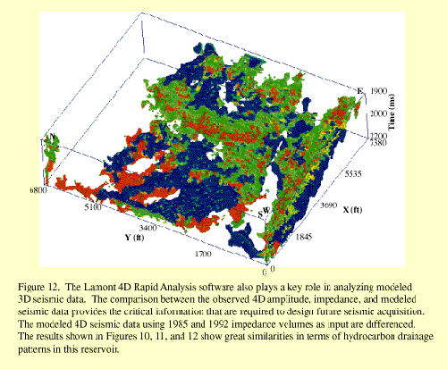 Multi-dimensional seismic forward modeling has gradually become a critical tool in seismic exploration for hydrocarbons. The output of the seismic modeling is a set of volumes with changes in seismic amplitude and travel-time predicted at discrete time-intervals over the life of the field (Figure 6).